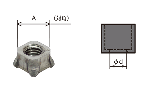※例えば、A寸法が9㎜の場合、ΦdはΦ10となります。