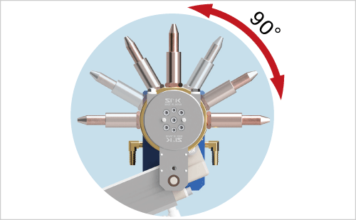 ホルダーを90°自動回転させ、電極を切り替えます。