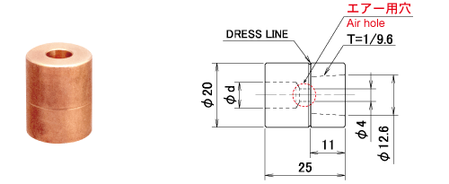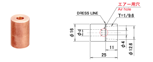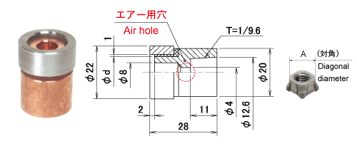 必ずエアーブロー付きストレートシャンクで、エアーを通してご使用ください。エアーを通さずご使用されると、ナット内部のスパッタ付着や、チップが焼きつく事があります。
