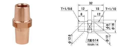 ※電極を装着の場合、テーパーの長さは13mm以下を選定してください。
